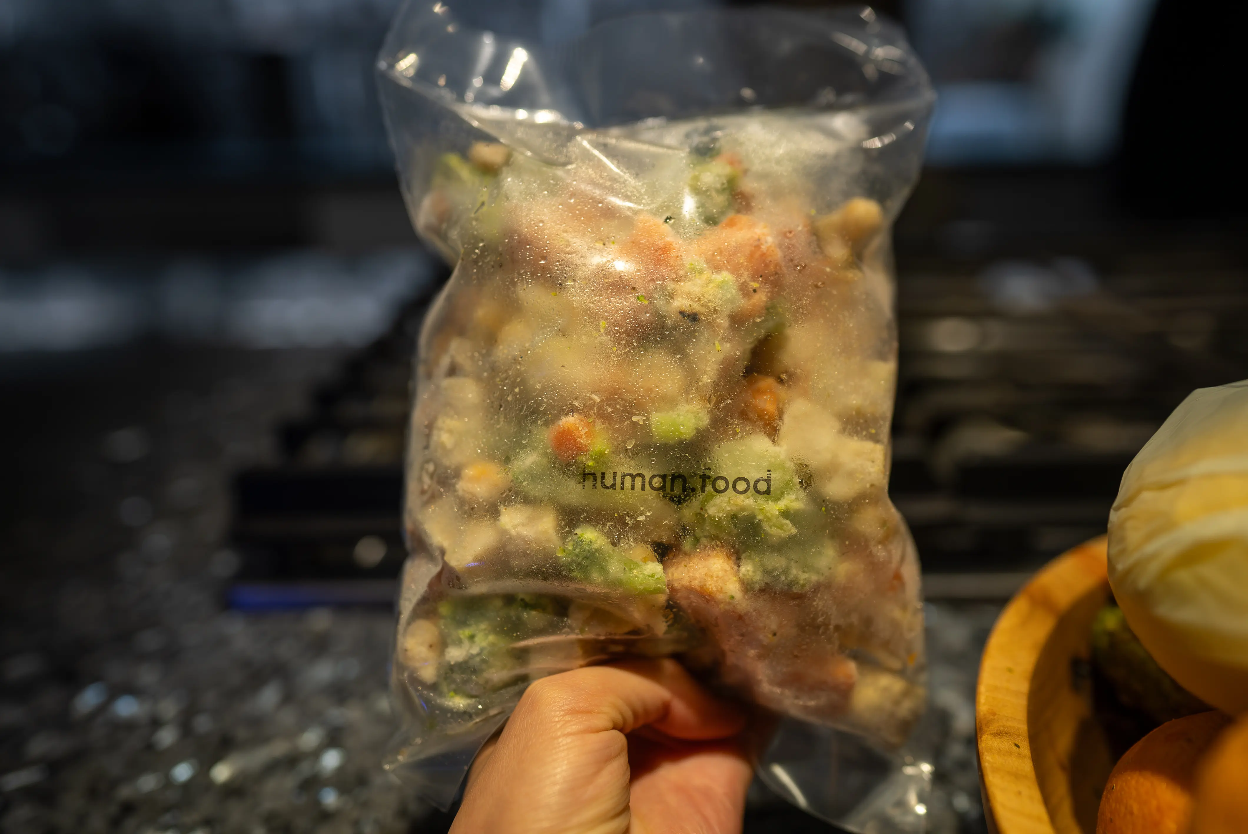 Her idea of good is very strong. I was particularly interested in Human Food given my love of cooking. I could taste the potential, which unfortunately tastes like dog food, so I badly wanted to improve the product's taste and texture so it was good enough for me to eat regularly. I suggested raising the price so the product could be better.